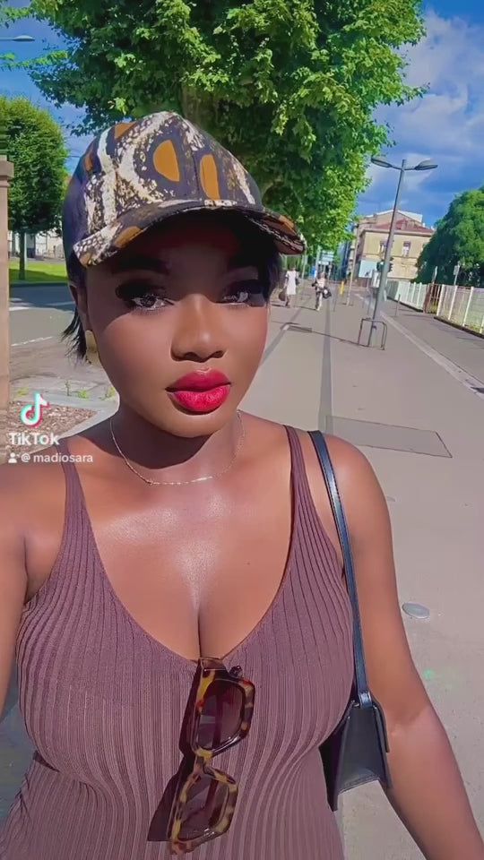 La casquette a une forme classique avec une visière incurvée. Elle peut être ajustée à l'arrière grâce à une sangle.